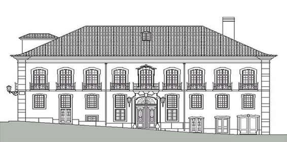 A fachada principal, a poente, organiza-se em dois níveis de janelas, sendo as do nível da sobre-loja de guilhotina e as do andar nobre de sacada. O conjunto de cantarias que envolve o portão de acesso ao interior, de grande dimensão, prolonga-se no piso superior com varanda. A fachada lateral, nortem segue a mesma ordem arquitectónica da principal, tanto a nível da sobre-loja como do andar nobre. |
