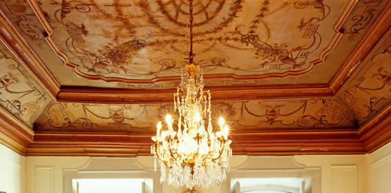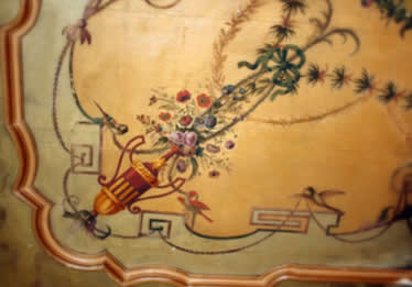 Os tectos de telas pintadas a têmpera datam do período de 1796 a 1805 e são atribuídos à escola de Pillement.