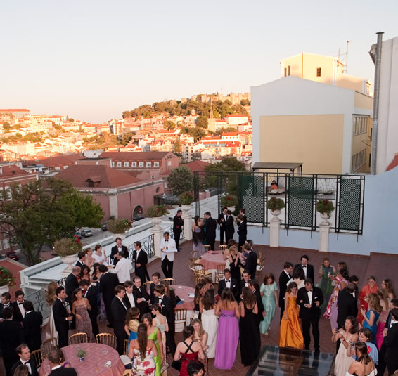 O terraço da Casa, com 200m e capacidade para cerca de 200 pessoas, tem uma vista magnífica sobre a cidade de Lisboa.